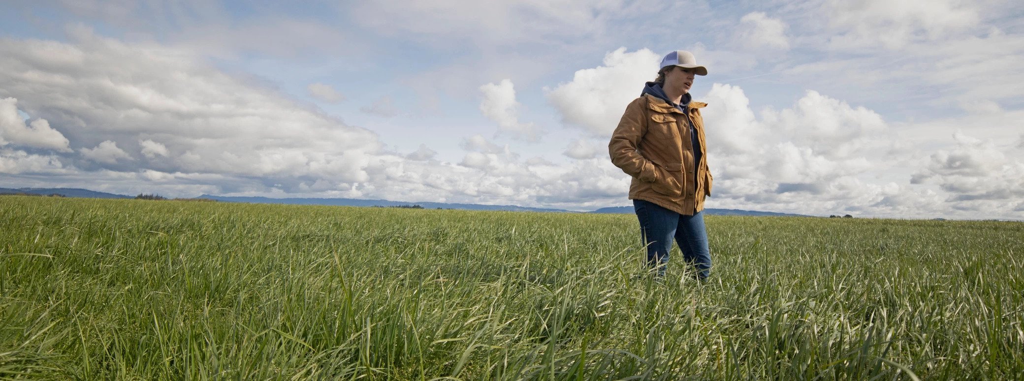 Farmer Brenda Frketich looks over her field of grass seed in St. Paul, Oregon